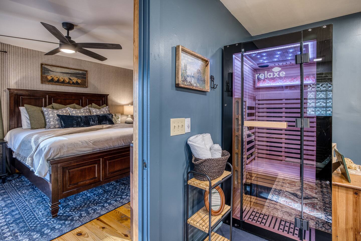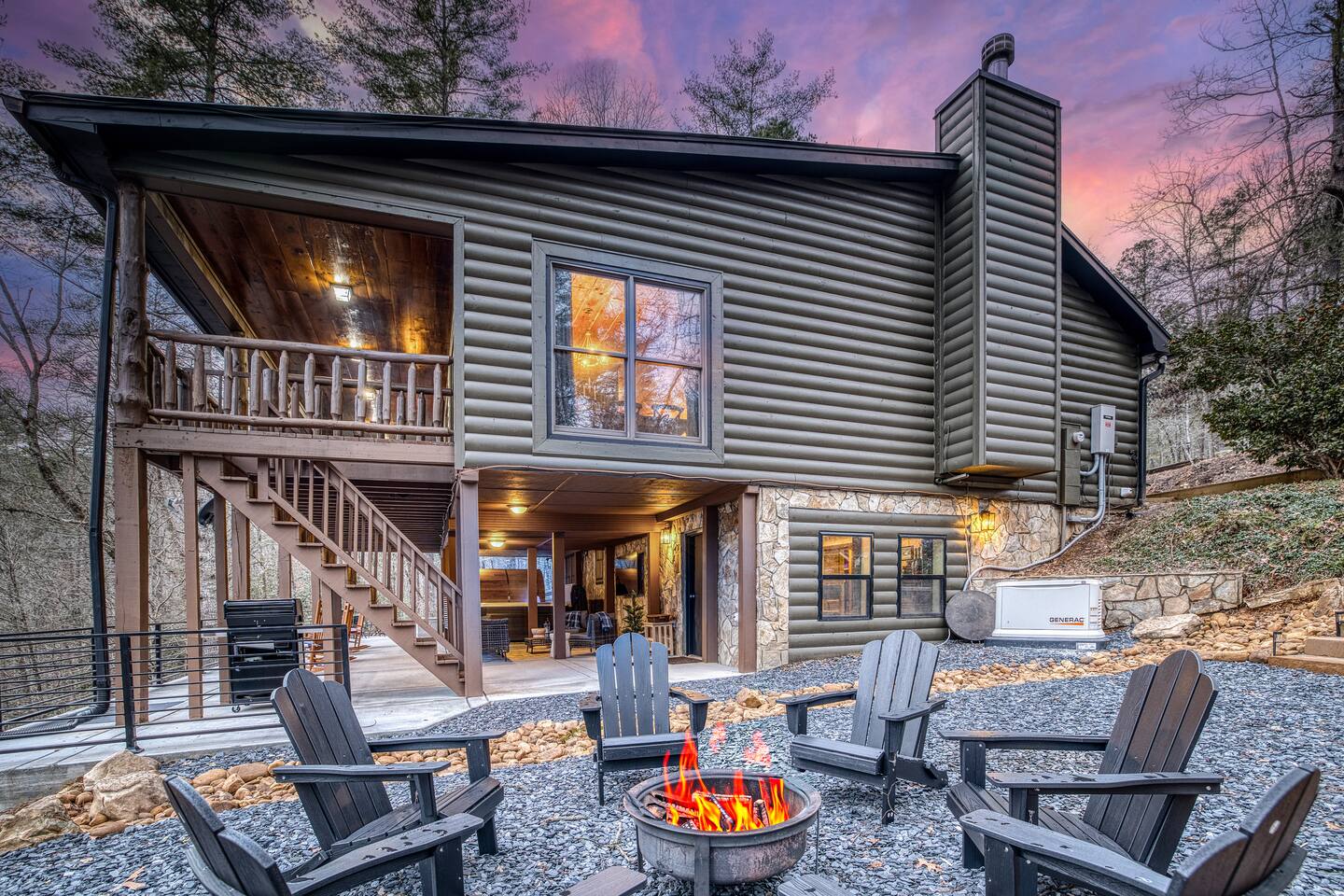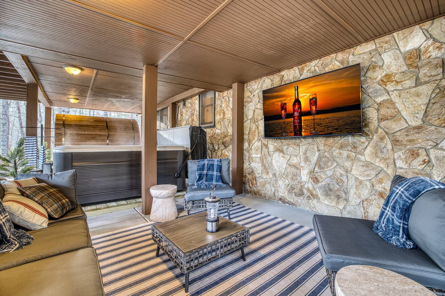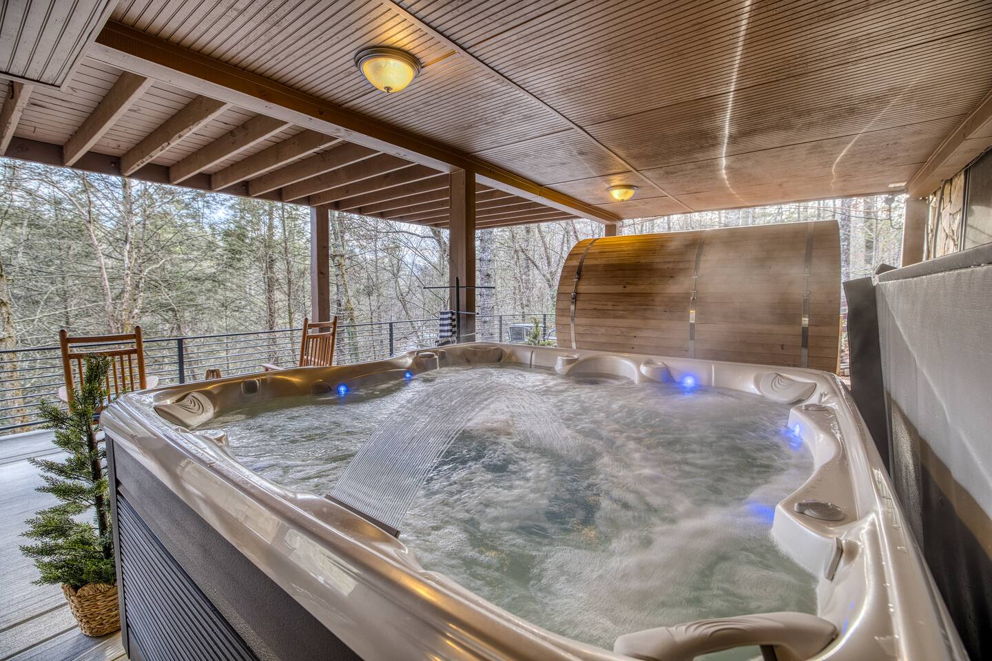 Welcome to Riverbend Sanctuary — A Luxury River Retreat 🏞️ Tucked along a private stretch of the Toccoa River headwaters, Riverbend Sanctuary is designed to be more than a place to stay—it’s a place to rest, recharge, and reconnect. Located just 11 miles from downtown Blue Ridge, this peaceful, spa-inspired retreat blends upscale comfort, nature, and wellness for families, couples, and small groups. Whether you're enjoying morning coffee overlooking the water, unwinding in the sauna, or stepping down to the river for world-class fly fishing, every detail is designed for relaxation. A Private Wellness Experience— Enjoy luxury amenities that bring the feel of a boutique retreat: 🛁 8 person hot tub with lights and jets 🧖♀️ 8 person barrel steam sauna for deep relaxation 🔴 Red light sauna in the primary suite 🔥 Firepit for quiet evenings by the river ☕ Coffee and hot cocoa bar 🥂 Wet bar 📡 High-speed Starlink WiFi 🧺 Laundry nook with new washer and dryer 📺 Smart TVs in every room Riverfront Living & Fly Fishing— The property sits directly on the Toccoa River headwaters, known for its clear water and excellent trout fishing. Guests can: 🔸Walk directly down to the river from the private deck 🔸Enjoy fly fishing, tubing, or kayaking just steps from the home 🔸Relax on the riverside deck and listen to the water flow 🔸A separate picnic deck provides the perfect setting for outdoor meals surrounded by nature. Outdoor Spaces Designed for Relaxation— The home was designed to let you slow down and enjoy the setting: 🔸Covered upstairs porch with hammock and seating around a gas firepit 🔸Downstairs covered lounge with TV, grill, cornhorn, life size outdoor games, hot tub, and sauna 🔸Large private BBQ grill for family meals outdoors 🔸 Gather around the outdoor wood burning fire pit overlooking the river. 🔸Every outdoor space is positioned to take in the sound and view of the river, creating a true retreat atmosphere. Warm, Comfortable Interior— Inside, Riverbend Sanctuary combines rustic charm with modern comfort: 🍽️Fully stocked kitchen with new appliances 🍴Dining area perfect for gathering 🛋️An inviting living room with stone fireplace 🎱Lower-level living room and game room with pool table Sleeping Arrangements— Spacious and comfortable accommodations for families or groups: 🛏️Top Floor: Primary king suite with red light sauna, plus one queen bedroom 🛏️ Lower Level: One king bedroom, one queen bedroom, bunk bed, and sleeper sofa in the lower living room 📺 All bedrooms include large Smart TVs and comfortable bedding for restful nights. Easy Arrival— 🗝️Enjoy seamless self check-in with personalized keypad entry for a smooth, stress-free start to your stay.
